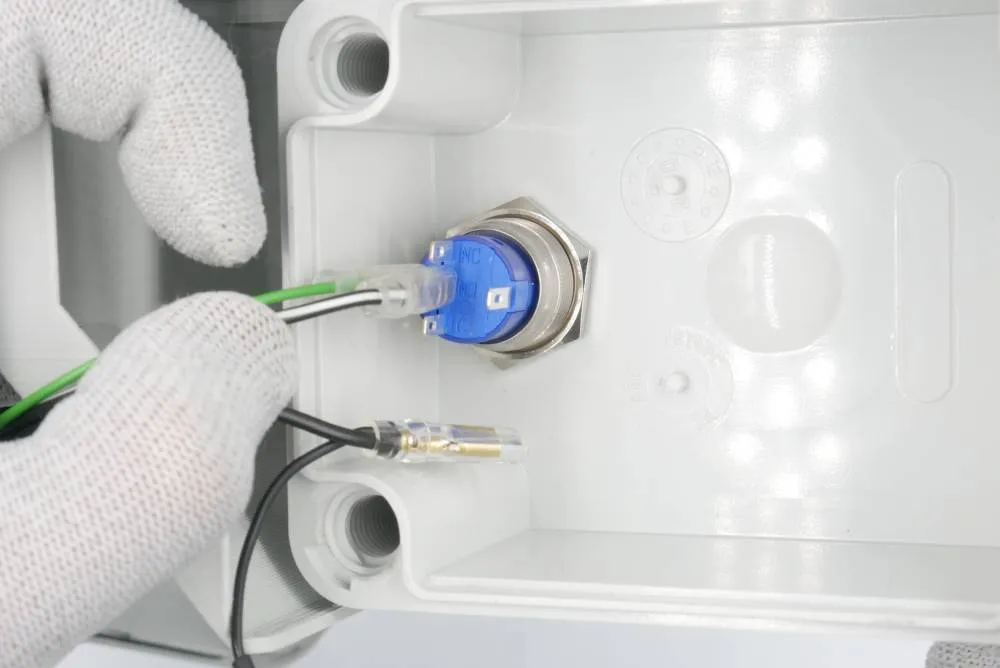 Here's a photo showing cable connections for the other button type commonly used in our rover: