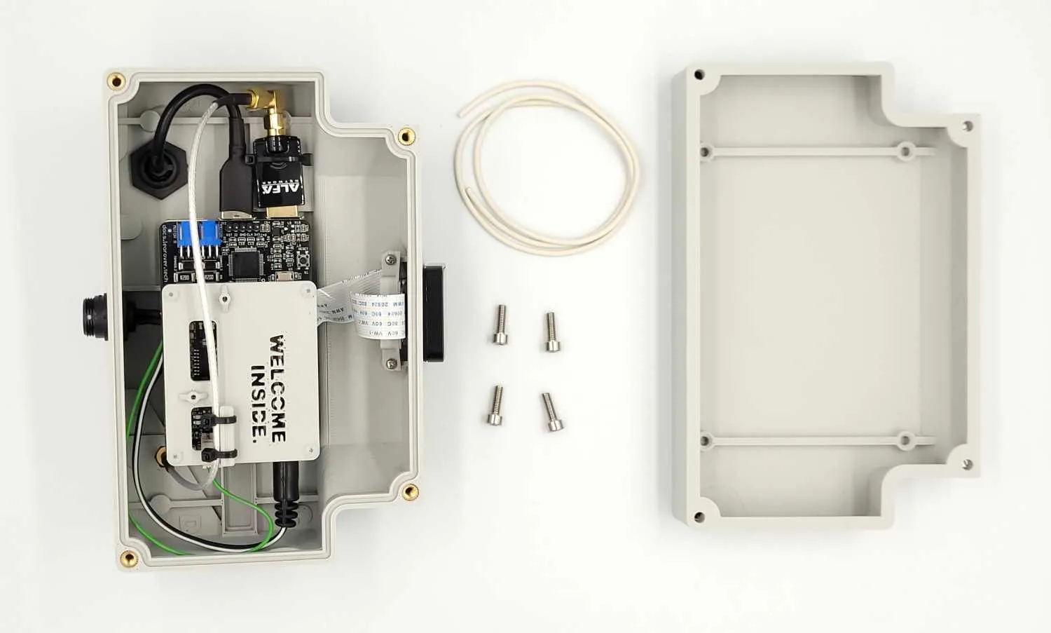 - 1x antenna cable, a nut and toothed washer
